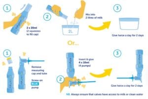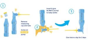 - 1 x 2ml pump per 2kg lamb, per feed